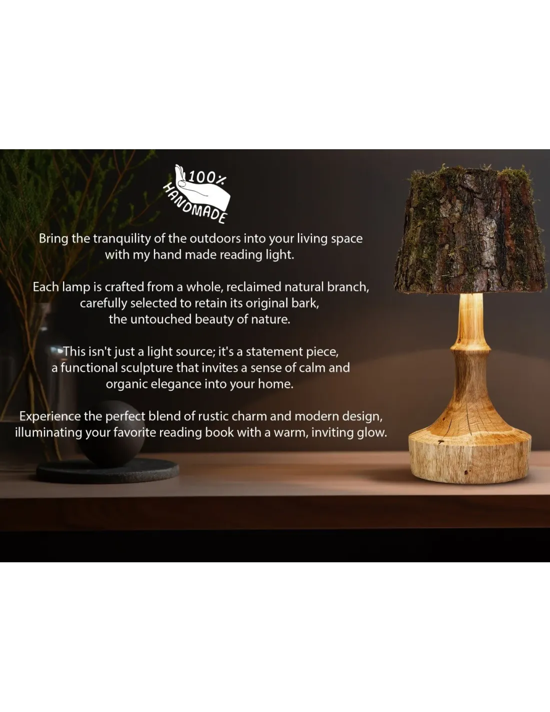 Each lamp is crafted from a whole, natural branch, carefully selected to retain its original bark, celebrating the untouched beauty of nature. It is a functional sculpture that invites a sense of calm and organic elegance into your home.