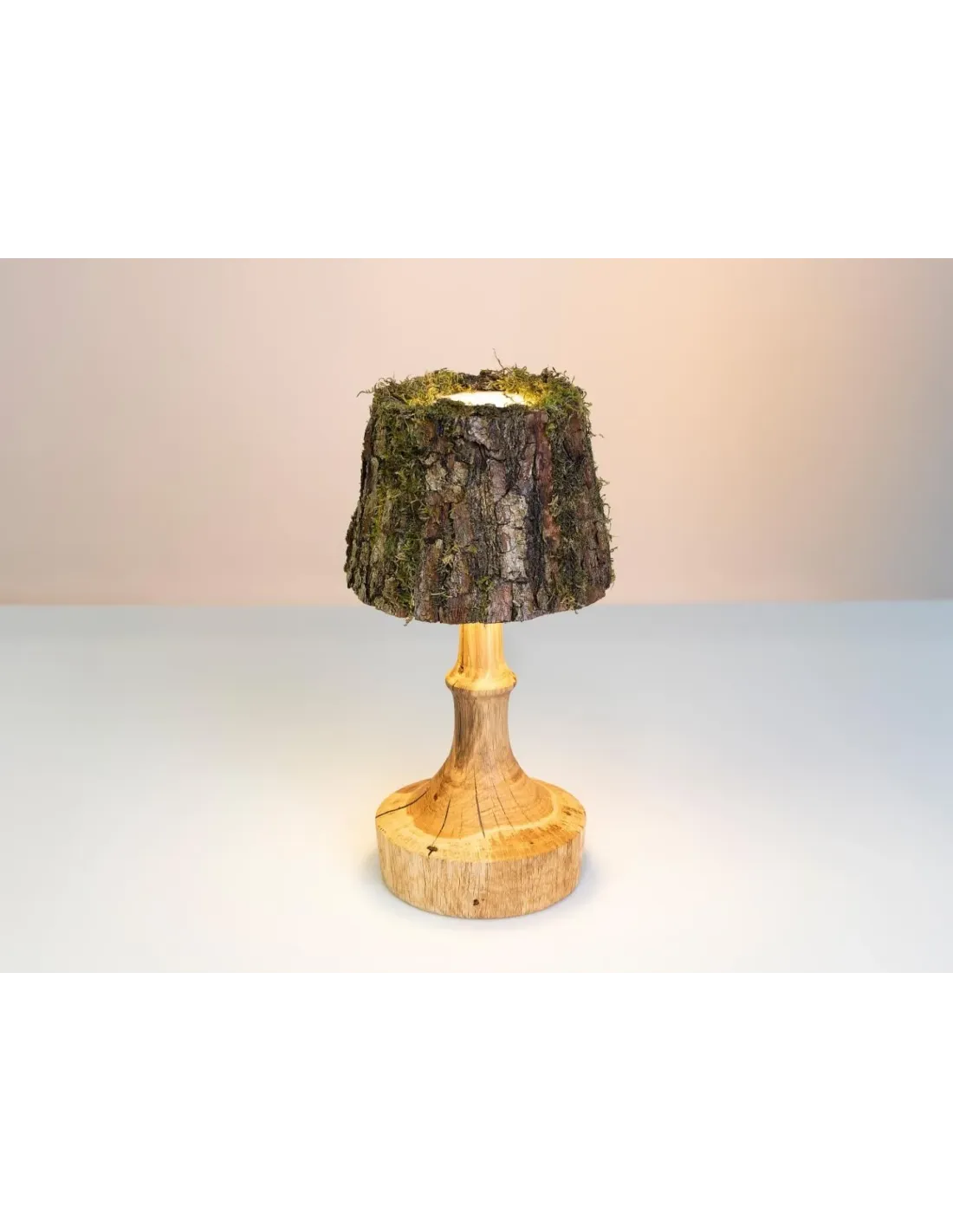 Handmade wooden LED lamp with battery power – a unique, rustic and eco-friendly accent light for your home or office. Perfect as a cozy bedside lamp, decorative shelf lighting, or a one-of-a-kind gift. No cables needed, runs on batteries for easy placement anywhere.